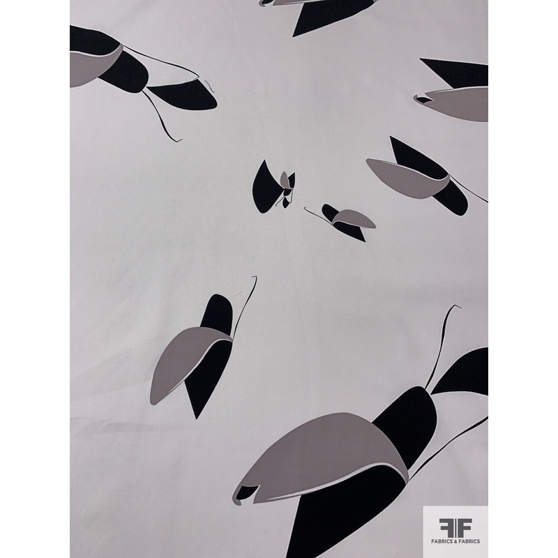 Abstract Petals Printed Cotton Crepe – White / Black / Grey Fabric by the Yard