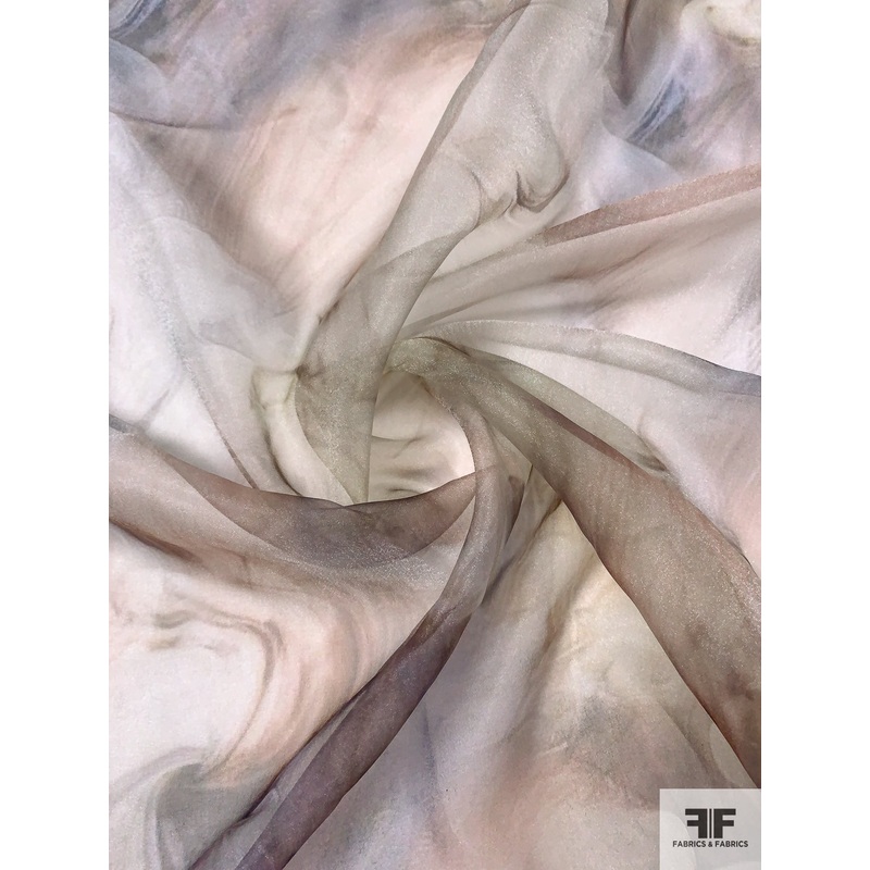 Cloudy Abstract Printed Shimmer Polyester Organza – Muted Tones Fabric by the Yard