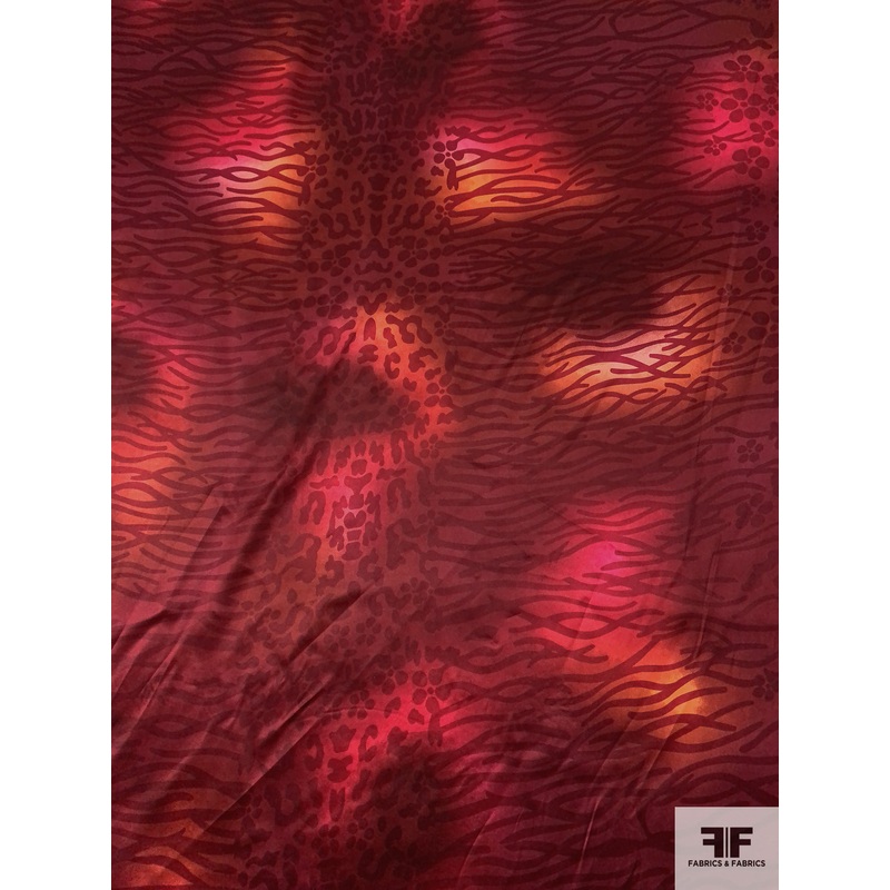 Cloudy Animal Pattern Printed Silk Charmeuse – Dark Red / Orange / Magenta Fabric by the Yard