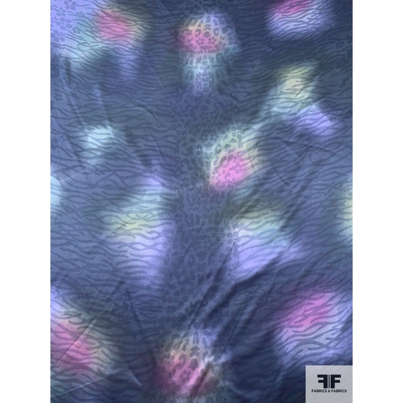 Cloudy Animal Pattern Printed Silk Charmeuse – Dusty Purply-Blue / Pink / Pale Green Fabric by the Yard