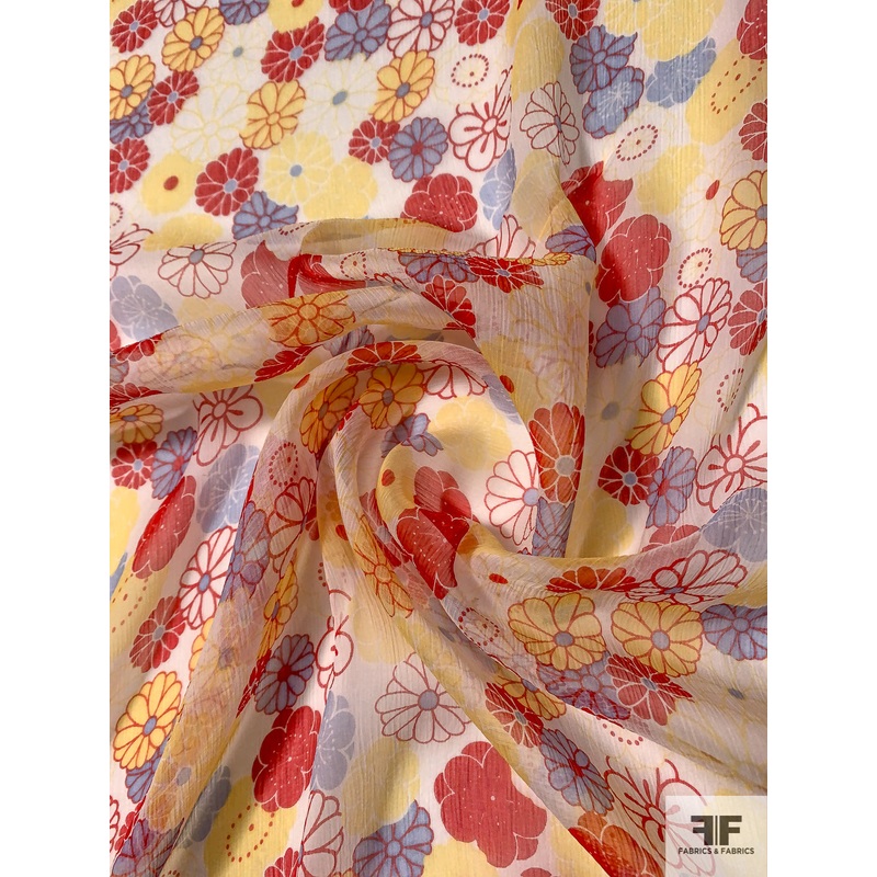 Daisy Graphic Printed Silk Chiffon – Red / Yellow / Sky Blue Fabric by the Yard