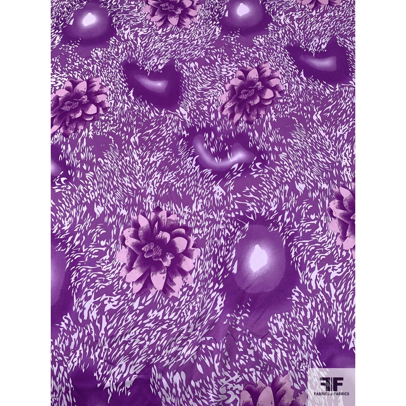 Floral and Animal Pattern Printed Silk Charmeuse – Amethyst Purple Fabric by the Yard