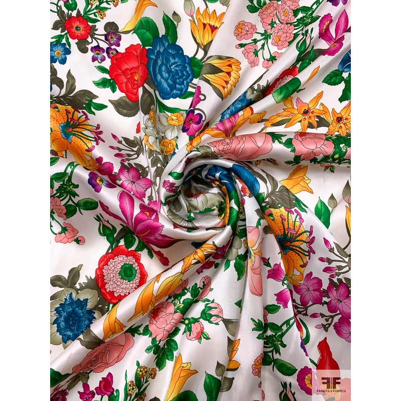 Floral Printed Silk Charmeuse – Multicolor / Off-White Fabric by the Yard