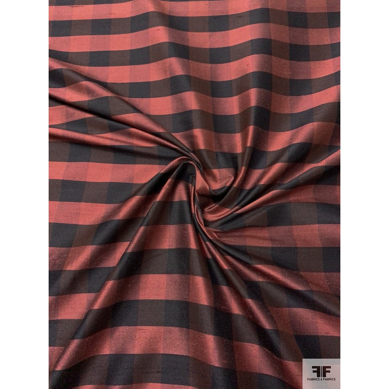 Gingham Yarn-Dyed Silk Shantung – Brick / Black Fabric by the Yard