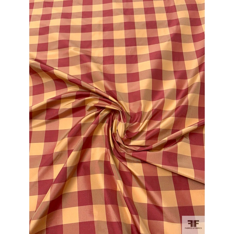 Gingham Yarn-Dyed Silk Taffeta – Dusty Rose Pink / Nude Fabric by the Yard
