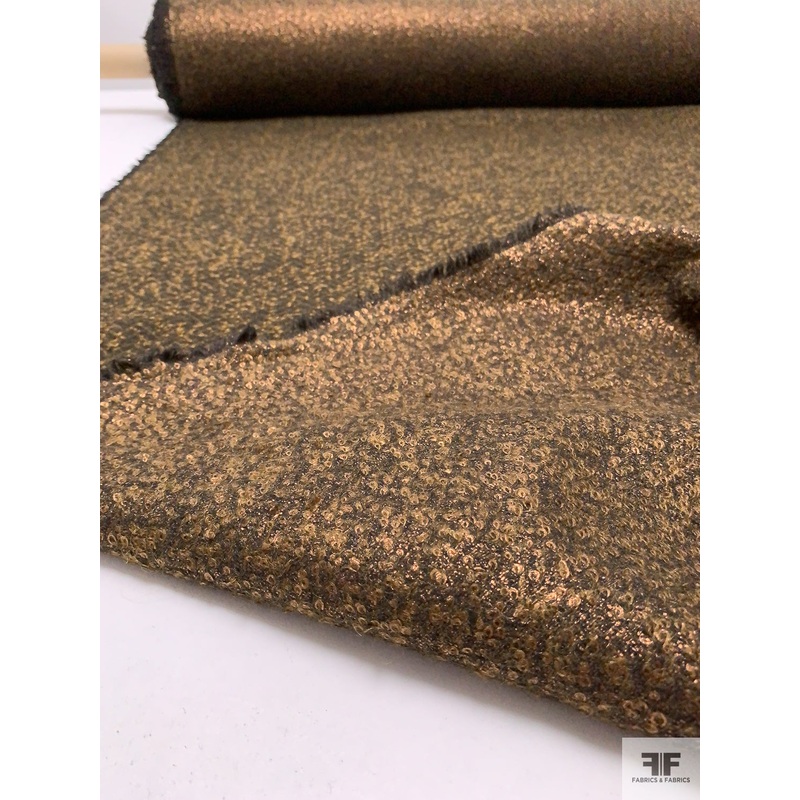 Italian Double-Sided Foil Printed Wool Boucl Herringbone Jacket Weight – Bronze / Black Fabric by the Yard