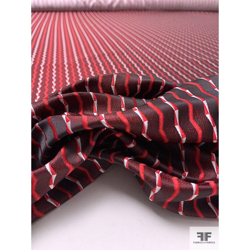Jagged Lines Jacquard Brocade Suiting – Red / Black / Grey Fabric by the Yard