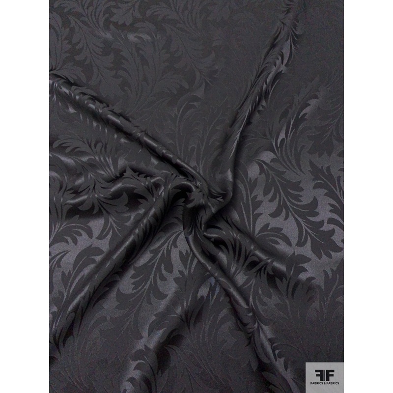 Leaf Jacquard Silk Charmeuse – Black Fabric by the Yard