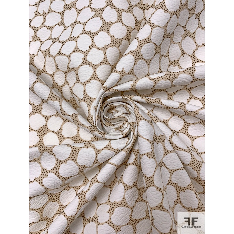 Made in Switzerland Graphic Printed Cotton Pique – White / Oatmeal / Brown Fabric by the Yard