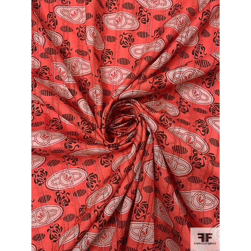 Oval Buds Printed Pointelle Cotton Lawn – Deep Coral / Brown / Taupe Fabric by the Yard