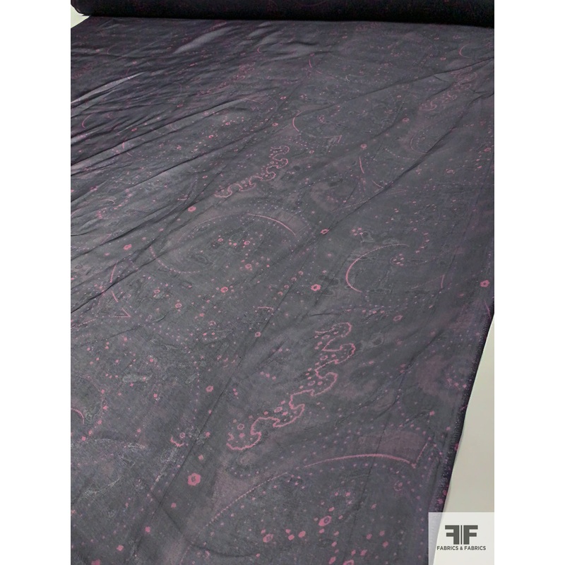 Paisley Printed Silk Organza – Black / Dusty Raspberry Fabric by the Yard