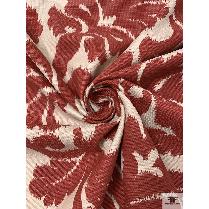 Regal Ikat Leaf Printed Basketweave Cotton – Antique Red / Beige Fabric by the Yard