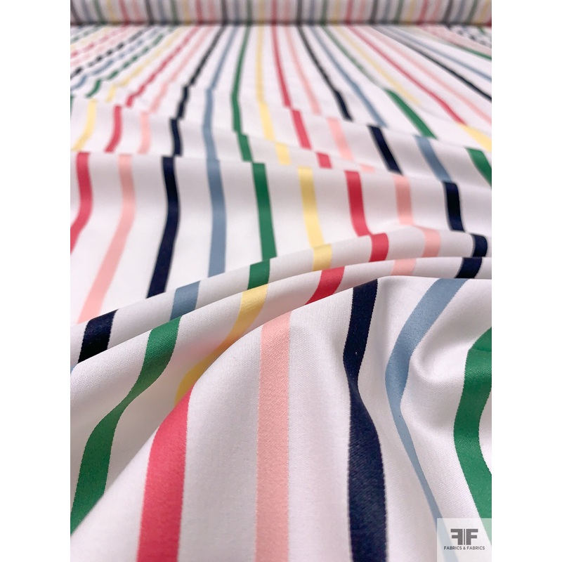 Yarn-Dyed Satin Striped Cotton Shirting – White / Multicolor Fabric by the Yard